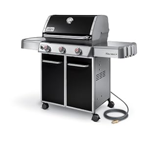Item Description The Right Stuff You'll love cooking up a storm on this glamorous grilling stunner. The Genesis? E-310 gas grill comes fully equipped with front-mounted control knobs, porcelain-enameled cast-iron cooking grates and porcelain-enameled Falvorized? bars to effectively hold and distribute heat as you grill. Features: 3 Stainless steel burners 38,000 BTU Individual electronic ignition Porcelain-enameled cast-iron cooking grates Porcelain-enameled Flavorizer? bars Primary cooking area = 507 sq. in. Warming rack area = 130 sq. in. Total cooking area = 637 sq. in. Natural gas grill includes a 10-foot flexible hose Finish: Black Warranty Days: 365 Made in the USA Specifications: Product Dimensions with Lid Open: Height: 64.5 inches Width R-L: 60 inches Depth: 30 inches